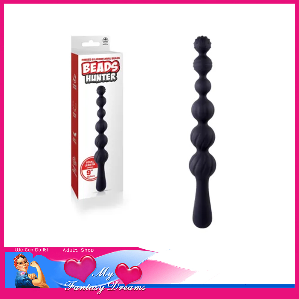Beads Hunter | Anal Probe with Handle Beads Silicone 9″ Total Black