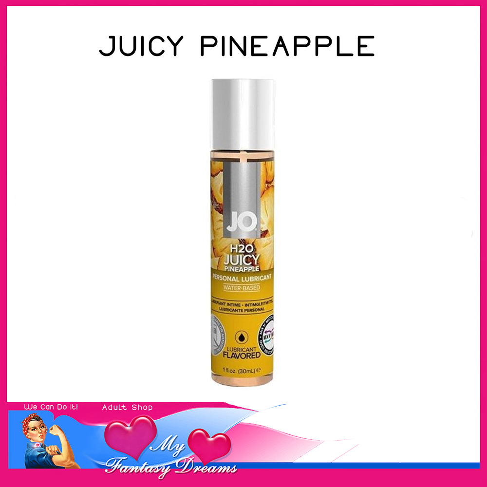 JO H2O Juicy Pineapple flavored lubricant lets you enjoy the citrusy sweetness of pineapples. Featuring a water-based formula and juicy, ripe pineapple flavoring, its sensual, comforting glide and silky-smooth feel are perfect for any intimate moment, particularly oral play. And when you’re done, it cleans off easily and leaves your skin feeling soft and moisturized.