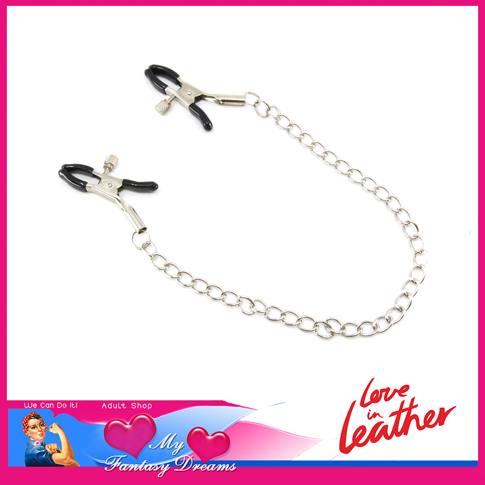 Chain joined nipple clamps.