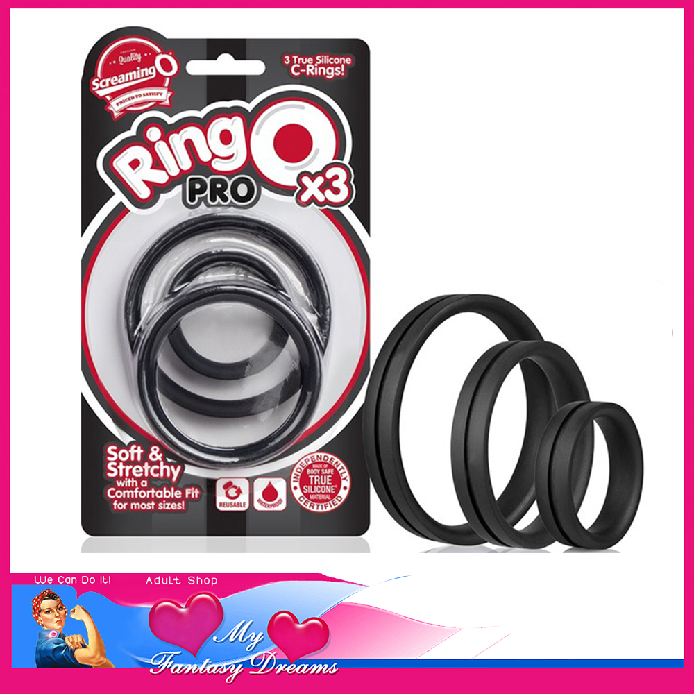 Next, pull the penis through the ring and adjust it at the base of the penis – do not bend or push an erect penis through, as this can cause injury. With the Ring O Pro x3, choose from L, XL, or XXL sizes and experiment with cock ring enhancement with one easy value-priced purchase!